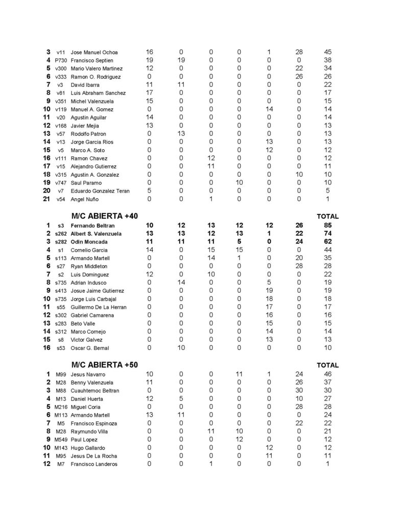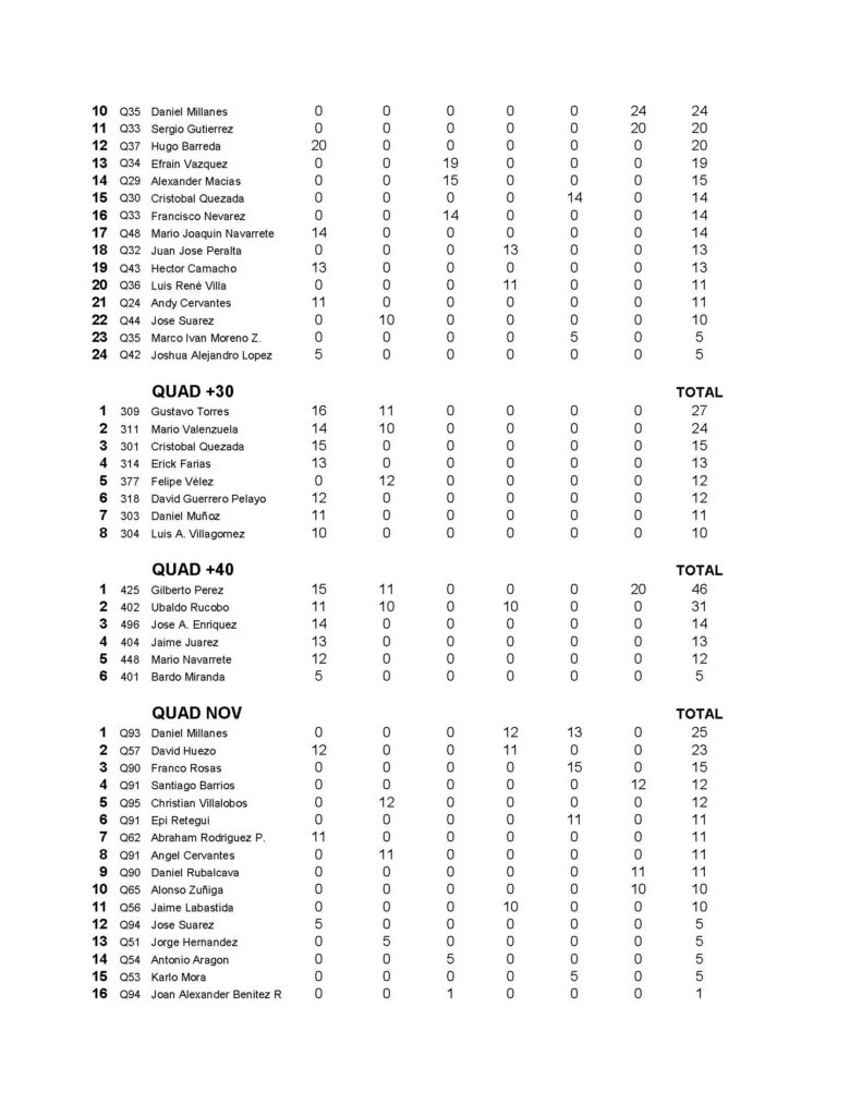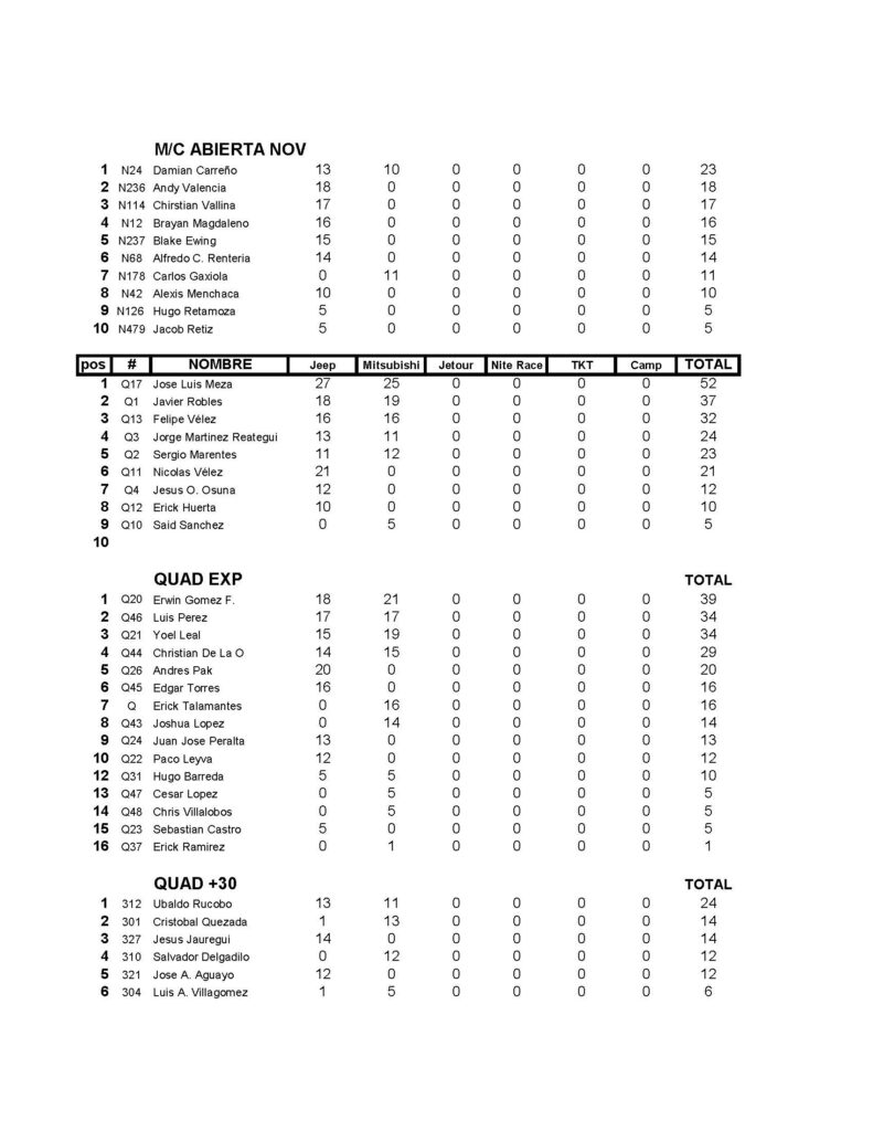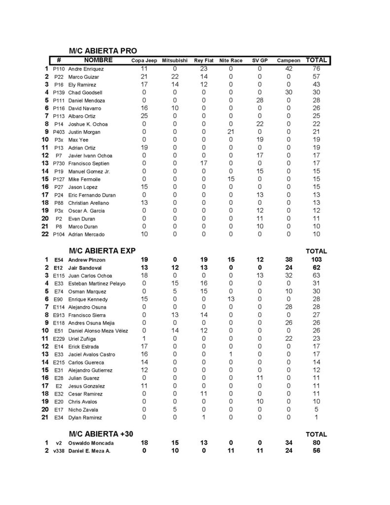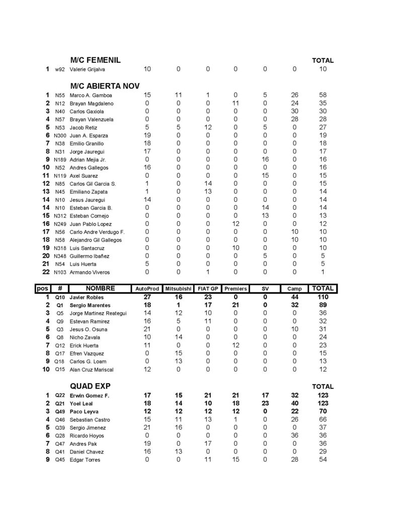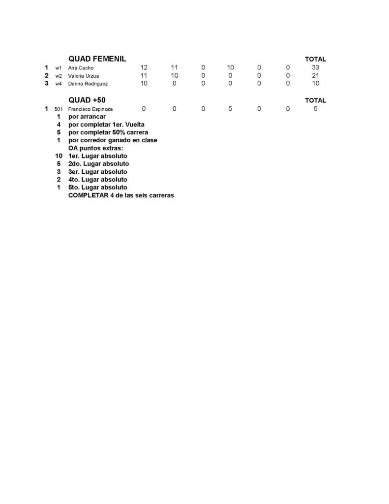 CAMPEONATO DE VEREDAS VEY´S POWERSPORTS, PUNTUACION FINAL SERIE 2024