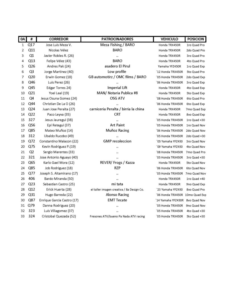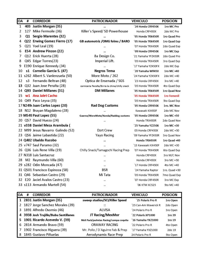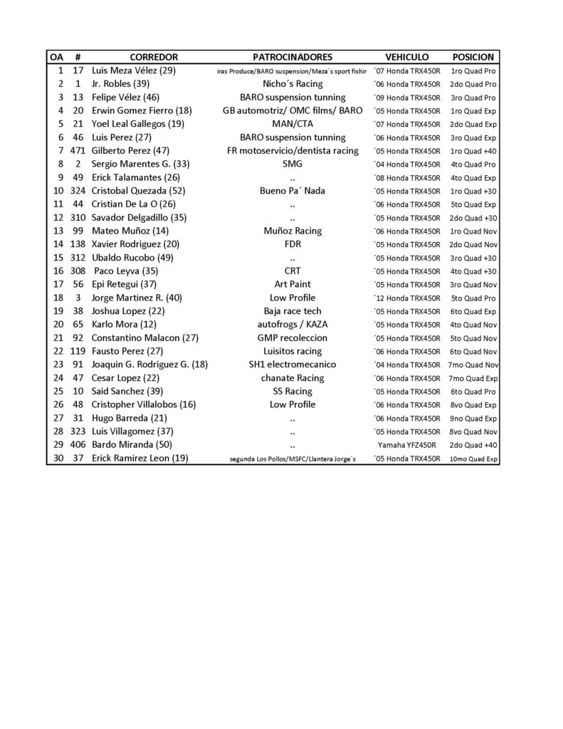 1. José Luis Meza Vélez (29), San Felipe B.C. Honda TRX450R (Liras Produce/ Baro suspension tuning)