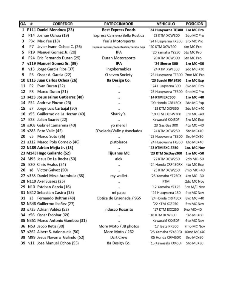 1. Manuel ¨pichitos¨ Gómez (22), Tecate B.C. Yamaha YZ450FX (IPA/déjate ver/lagunilla/dist. punta colonet)